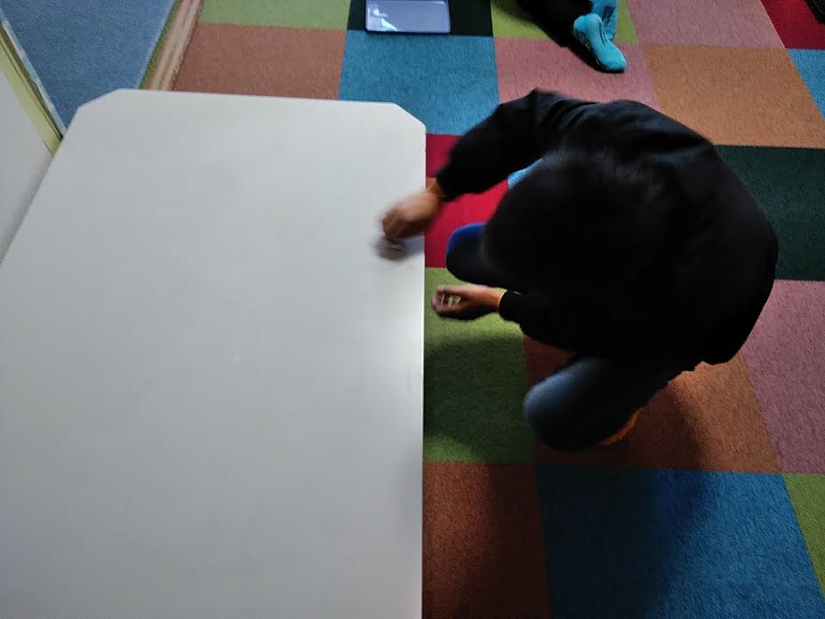 机をスポンジで磨いたり