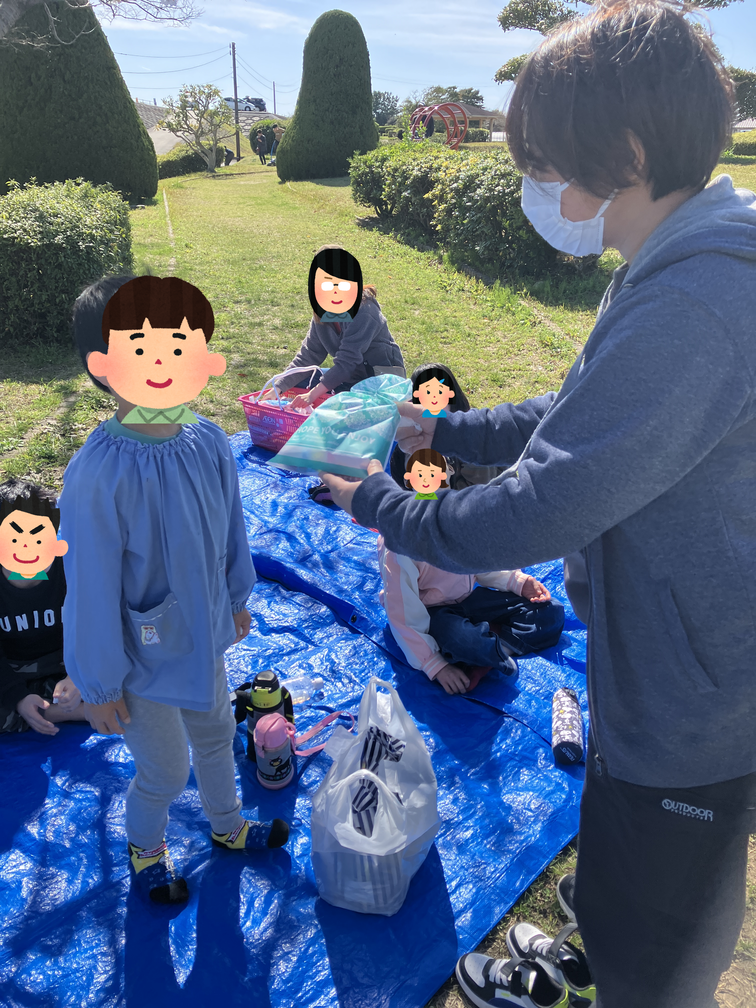 春休みイベント③卒園お祝い🌸公園へお出かけ この春、保育園を卒園するお子さんをみんなでお祝いするため普段は遠くてなかなか行く機会のない龍馬空港の近くの公園へ遊びに行きました🚘️ 飛行機が飛んでくると遊びの手を止めて近くを飛ぶ飛行機に圧倒されていました✈ 階段を見つけて登っていくと・・・ 海が広がっていました🌊 遊んだ後は桜の木の下にブルーシートを敷いて、おやつタイムです。卒園するお子さんには豪華なお菓子と記念のアルバムを贈呈しました✨️